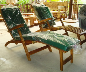 เก้าอี้นอนริมสระว่ายน้ำ ทำจากไม้สักทั้งชุด ปรับระดับสูงต่ำได้ รวมเบาะนั่ง