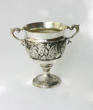 พานทองเหลืองชุบเงินทรงถ้วยรางวัลนำเข้าจากอินเดีย สูง 22 ซม. ขนาด 16.5 ซม.
